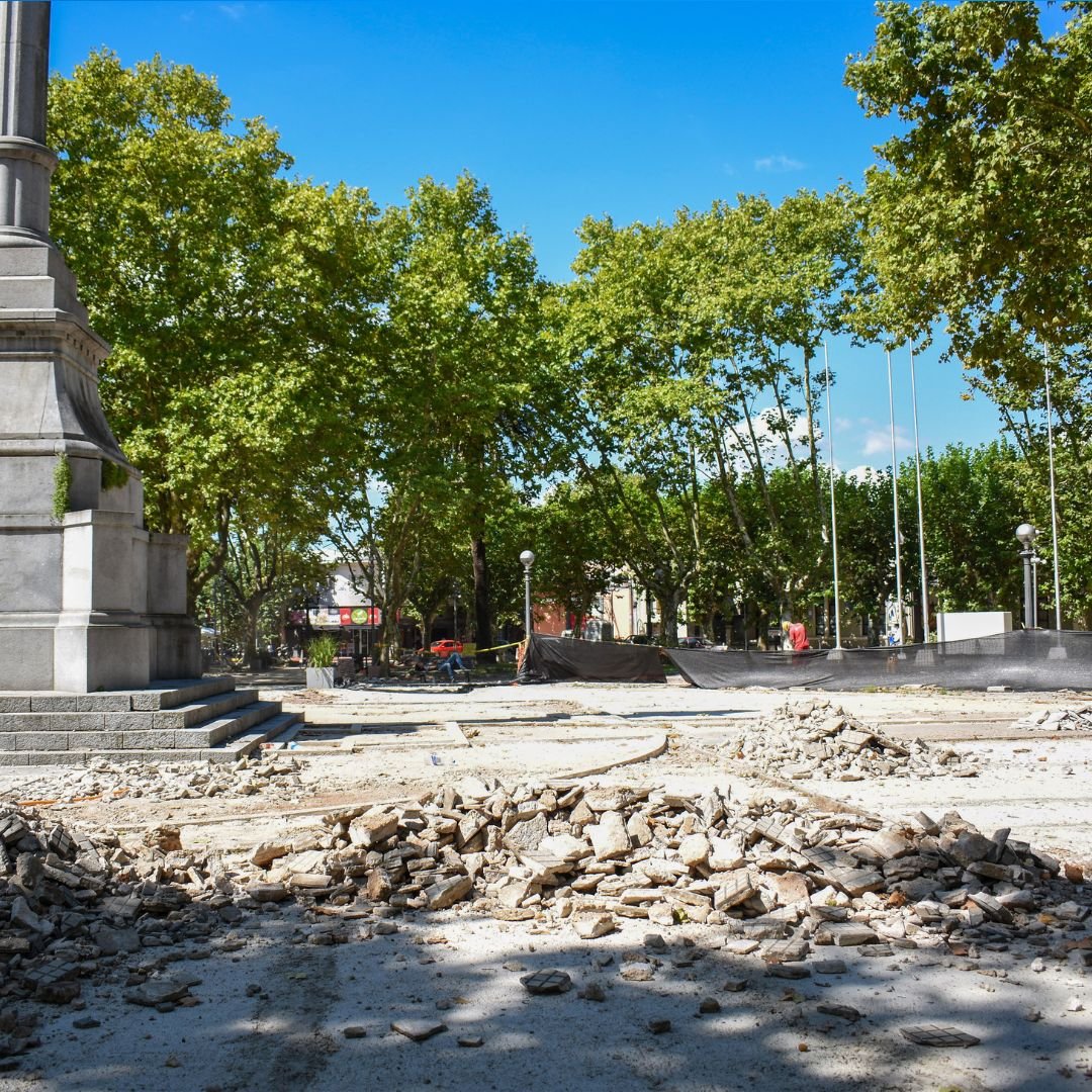 Remodelación total de los pisos y pavimentos de la Plaza Independencia en Durazno. La Licitación Pública 13/2024 consistió en la remoción de todos los pavimentos existentes, nuevos tendidos de pluviales, replanteo de pendientes y colocación de 2000+ mts2 de pavimento nuevo con baldosas monolíticas especiales de 64 panes. Una gran remodelación inaugurada el pasado febrero