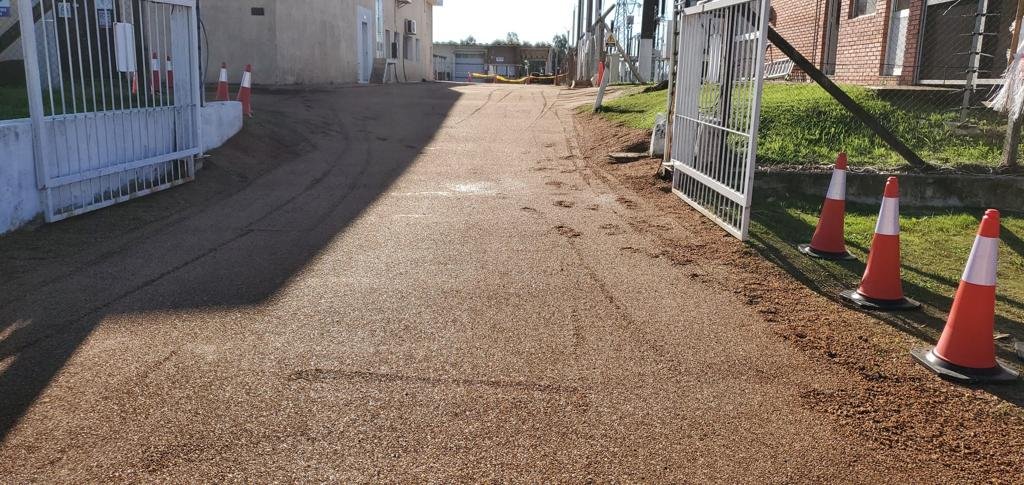 Construcción de una amplia caminería de ingreso y una playa de estacionamiento. También agregamos un nuevo sector de 1000m² de tratamiento bituminoso doble, que será utilizado para el tránsito, depósito de contenedores y estacionamiento.
